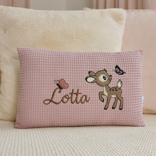 Namenskissen für Mädchen mit Rehkitz und Schmetterlingen